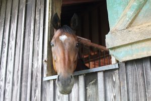 「今日お集まりの皆さんにご挨拶したらまた来るからね」馬房から立ち去る私をお見送りしてくれるサーチくんです。