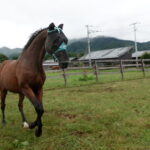 「最近は、調教に障害を取り入れています。障害といっても競馬の障害競走のように前へ前へと走るものではなく、ゆっくりと飛ぶものです。そのため今まで使っていなかった筋肉を使うので、通常の調教は、軽めにしています。」とのことでした。